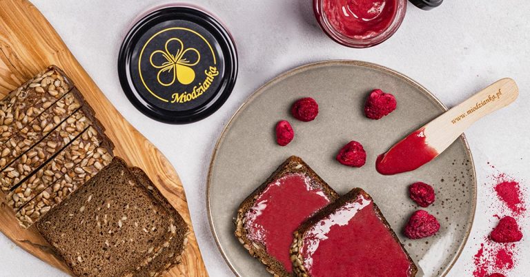Naturalny miód z maliną o kremowej konsystencji to idealny dodatek do każdego pieczywa. Połączenie maliny liofilizowanej z delikatną słodyczą naturalnego
