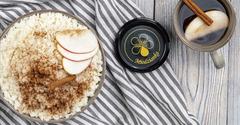 Potrzebne produkty: ryż (rodzaj wg uznania) – 50 g jabłko – 1 szt. Naturalny MIÓD z Cynamonem – 2-3 łyżeczki