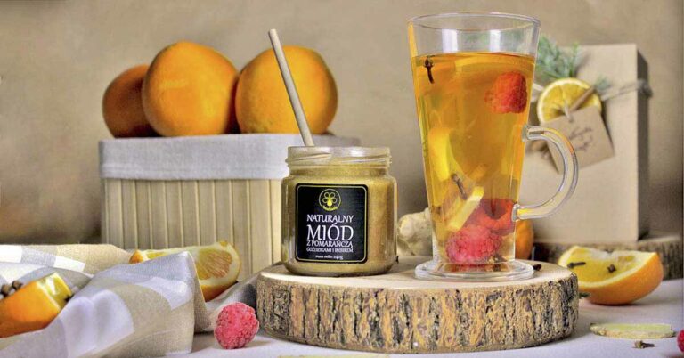 Potrzebne produkty: ulubiona herbata – ok. 250 ml plaster pomarańczy i cytryny Naturalny MIÓD z Pomarańczą, Goździkami i Imbirem –