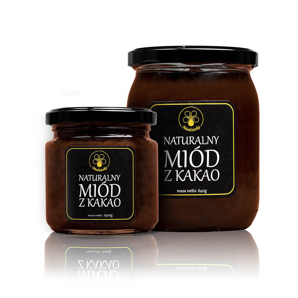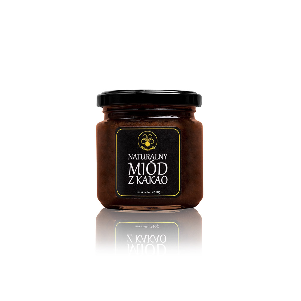 Kremowy, naturalny miód wielokwiatowy połączyliśmy z naturalnym, niesłodzonym i ciemnym kakao. Powstał zdrowy, smaczny i naturalny krem czekoladowy o smaku zbliżonym do wysokiej jakości czekolady, wolny od konserwantów, cukru i polepszaczy smaku. Właściwości miodu wzbogaciło kakao, które w swoim składzie zawiera przeciwutleniacze wspierające ochronę organizmu przed czynnikami chorobotwórczymi oraz wspomagające zwalczanie wolnych rodników. Zawarte w składzie polifenole wykazują działanie przeciwzakrzepowe, obniżające ciśnienie krwi w organizmie, zwiększają przepływ krwi do mózgu oraz pozytywnie wpływają na pamięć i koncentrację. Kakao działa rozluźniająco i uspokajająco.